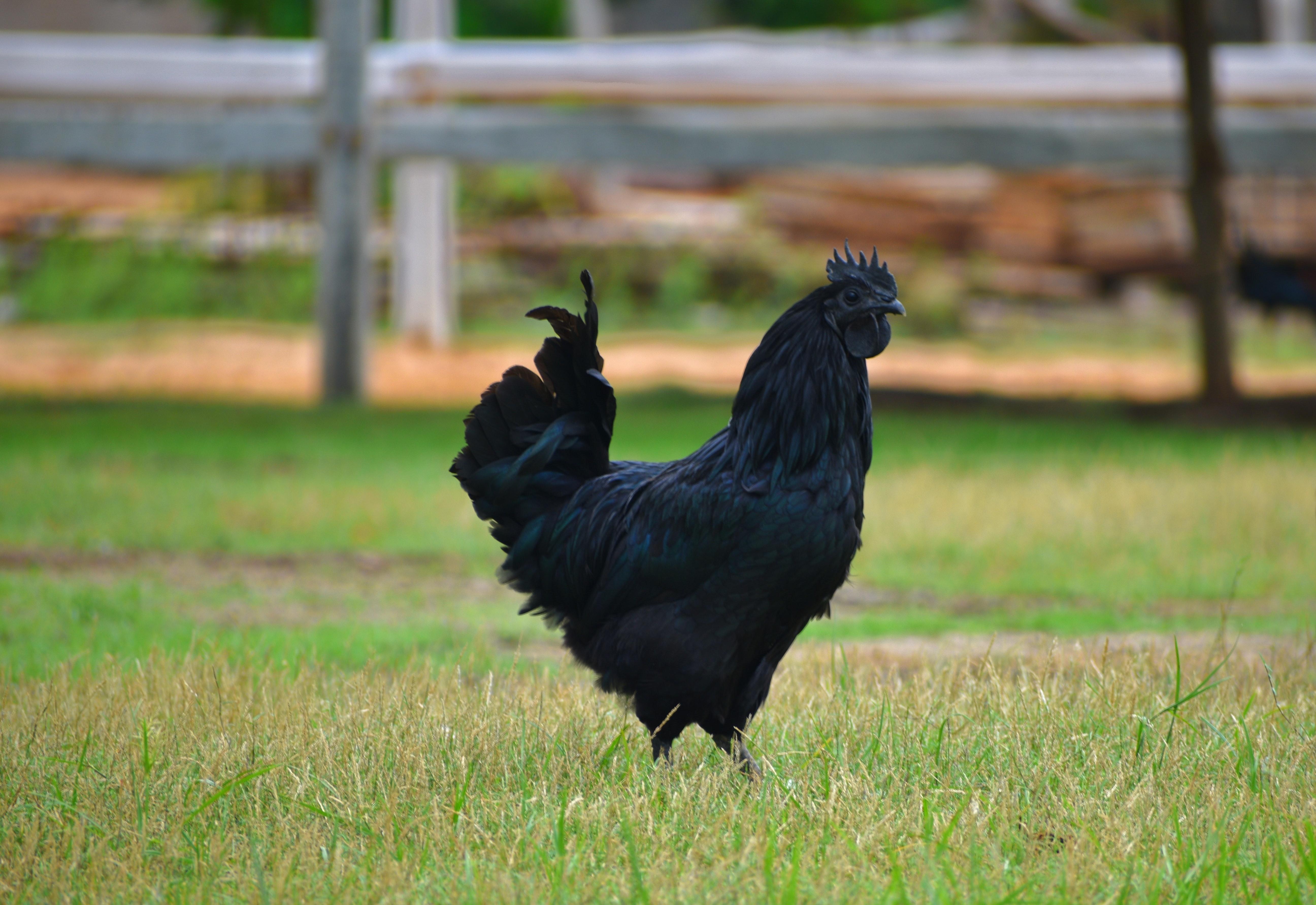 Essa raça de galinha nativa de indonésia é considerada rara. Sua aparência é inconfundível: ela é absolutamente preta da cabeça aos pés.