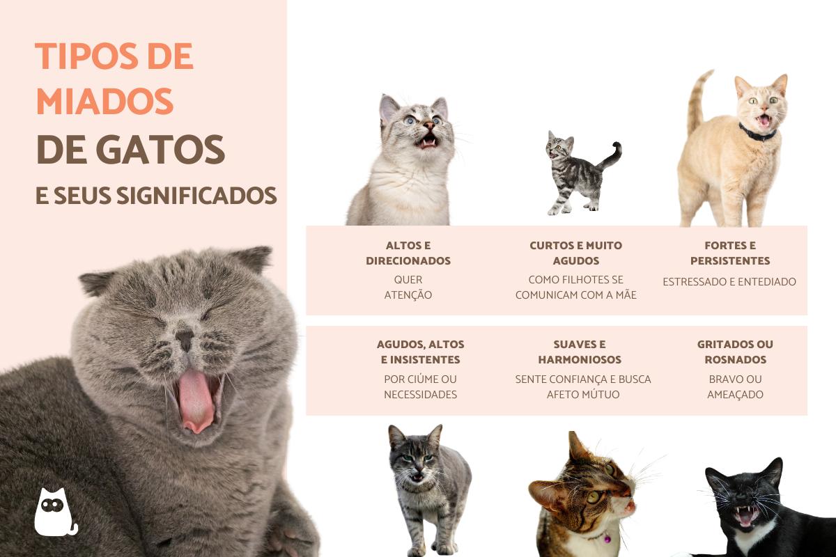 Na verdade, existem diferentes tipos de miados dos gatos, que podem variar principalmente em duração, volume e intensidade. No PeritoAnimal, vamos explicar quais são os tipos de miado de gato e o que significam, considerando todas essas variações. Vamos nessa?