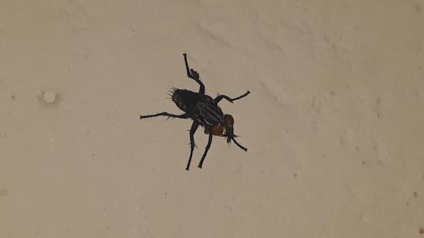 Esta MOSCA apareceu numa escola rural. Ela é peluda e não é azulada em cima, como é a varejeira.