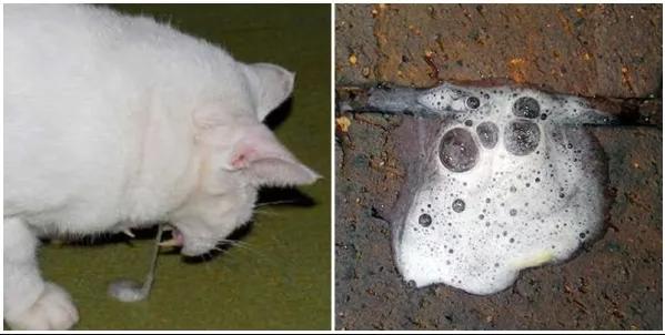 A espuma branca no vômito pode ocorrer devido a uma irritação no estômago (gastrite), causada por algo tóxico, como plantas ou medicamentos. Além disso, outras causas sistêmicas podem induzir esse tipo de vômito, como insuficiência renal, doença inflamatória intestinal, pancreatite e outras. A espuma branca pode resultar da mistura de água ingerida pelo animal e secreções gástricas.