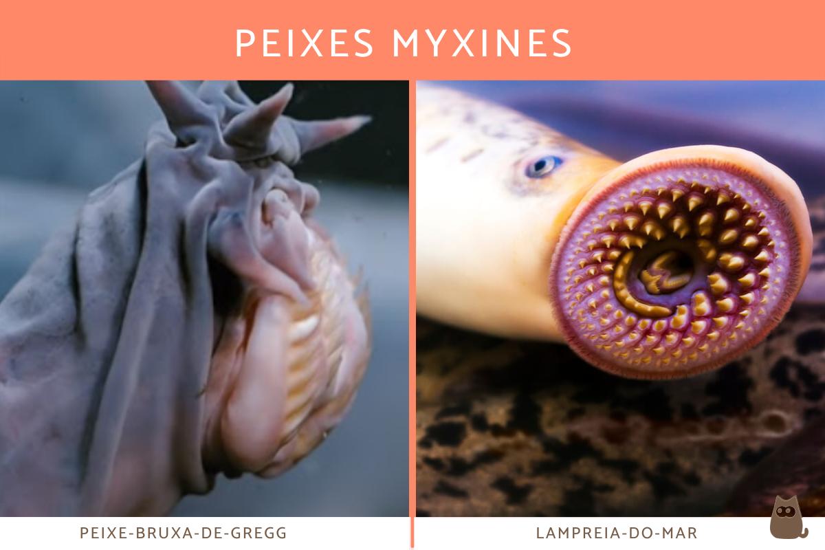 Dentro dos myxines, podemos destacar dois exemplos de peixes: