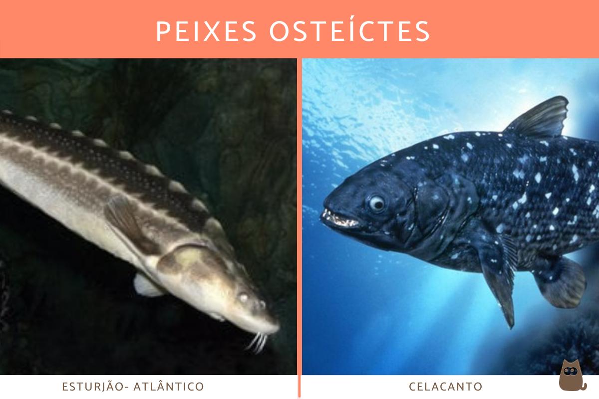 - Actinopterígeos (nadadeiras raiadas): como o esturjão- atlântico (Acipenser oxyrinchus) ou o bichir do Nilo (Polypterus bichir).