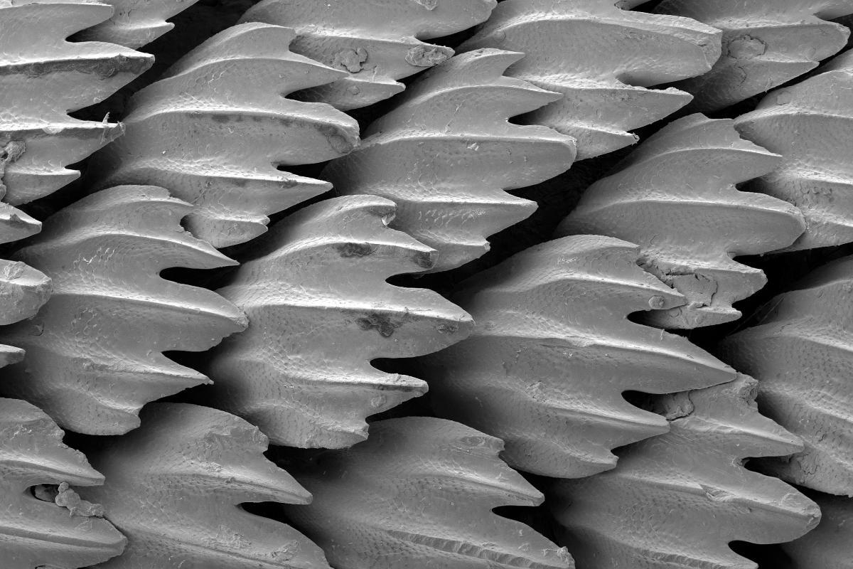 - Escamas dérmicas normais: são as escamas dérmicas típicas encontradas na maioria das espécies de tubarões. São dentadas nas bordas, com pequenas projeções que lhes dão uma textura áspera. Essas escamas ajudam a reduzir a resistência à água e atuam como pequenos escudos que protegem o corpo do tubarão;