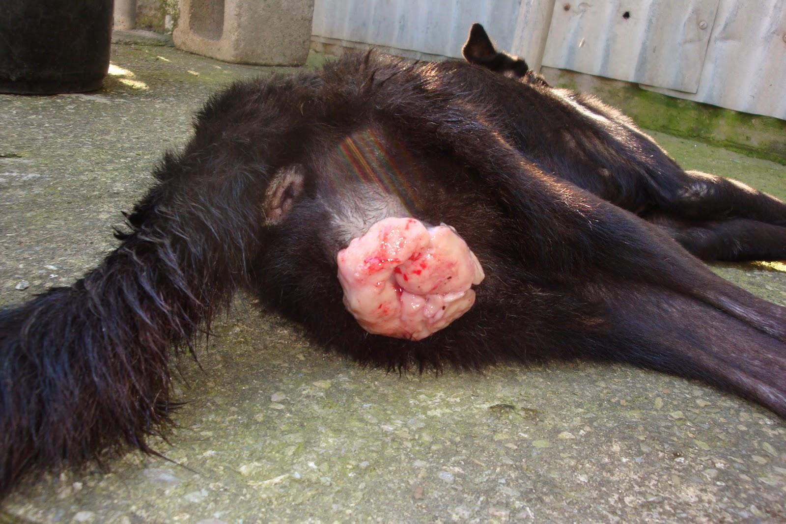 Abaixo deixamos uma foto de TVT em cães (atenção, a imagem é forte).
