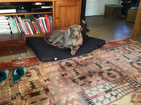 A minha cadela waimaraner tem quase 13 anos e teve um problema que não se descobriu a origem, começou com vómitos, foi logo ao Vet e deixou de ter força para andar e comer, foi medicada , está bem do estômago, mas continua a movimentar-se pouco e com dificuldade.